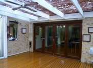 Part of large undercover outdoor area with the pergola roof draining into the house guttering. The total roof harvest area exceeds the gutter’s capacity and prior to fitting a Gutter Pumper, the gutters regularly overflowed between the valley (at corner) and several metres to the RHS of the doors. On one occasion, the house interior was flooded.
