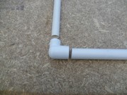If heated, a 25mm poly pipe will also tightly fit over a 20mm class 12 PVC pipe. A 25mm poly elbow is fitted to the poly pipe inside the downpipe. The flow of water should always be angled downwards inside the downpipe. A stainless steel ratchet clamp (not shown) will secure the poly pipe to the PVC pipe. Unless blocked, downpipes never contain less than two thirds air.